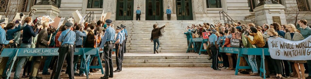 The stories of Vietnam aren’t lost on me. My father told me about his childhood friend who was drafted. The friend returned, but only for the PTSD to completely take hold of him as he would never be the same again. So with that being said, I wanted Chicago 7 to ring true — to have that impact that would make me feel numb at the horrors that these men and women were protesting. However, I feel very little as the end credits roll. Aaron Sorkin, who’s outstanding writing has been behind several of my favorite films, has a huge problem here. And the inconsistences with Chicago 7, fall heavily on his shoulders.