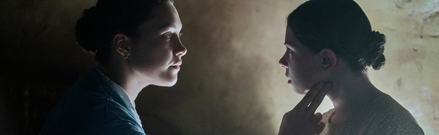 The camera pans from the sound stage, and the tower of film equipment, as we are introduced to a quiet woman, lit only by the light of candles as she consumes her dinner. Lib Wright (Florence Pugh) is an English nurse on her way to a village in Ireland in 1862. It’s a tumultuous time for the Irish as they have just come through the Great Famine, which they still blame the English. On the train ride to the village she hardly speaks to anyone around her. Upon Lib’s arrival, she’s brought in front of a panel of men of science and faith, informing her that she’s been there to assist with an 11-year-old girl who hasn’t eaten in four months. A clear impossibility—surely, but why the inclusion of clergy on the panel?